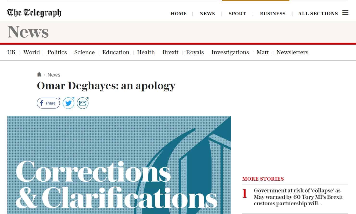 “Articles published on 28 July 2017 and 26 September 2017 suggested that Omar Deghayes had used some of the compensation monies received from the British government for its alleged involvement in his rendition and unlawful imprisonment in Guantanamo Bay, to pay his nephews to attend a gym where they had been radicalised. Two of his nephews were later killed whilst fighting in Syria. We now accept that, although some of the information we published was drawn from a local authority Serious Case Review, Mr Deghayes had not paid or encouraged his nephews to attend the gym nor was he responsible for his nephews travelling to Syria. We apologise to Mr Deghayes for any distress caused and have agreed to pay him damages and legal costs.”